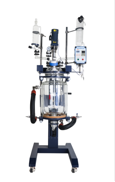 從結(jié)構(gòu)上看,夾套玻璃反應(yīng)釜是在單層玻璃釜體外側(cè)包裹有一層夾套,這層夾套可通入加熱或冷卻介質(zhì),通過熱交換來調(diào)節(jié)釜內(nèi)物料的溫度,釜體與夾套之間有一定間距,起到保溫和傳熱作用。而雙層玻璃反應(yīng)釜則是由兩層玻璃組成,內(nèi)層用于盛裝反應(yīng)物,內(nèi)外層之間形成密閉空間,同樣可用于介質(zhì)循環(huán)以控溫,且兩層玻璃通常經(jīng)過特殊工藝處理,有良好的密封性和強度。